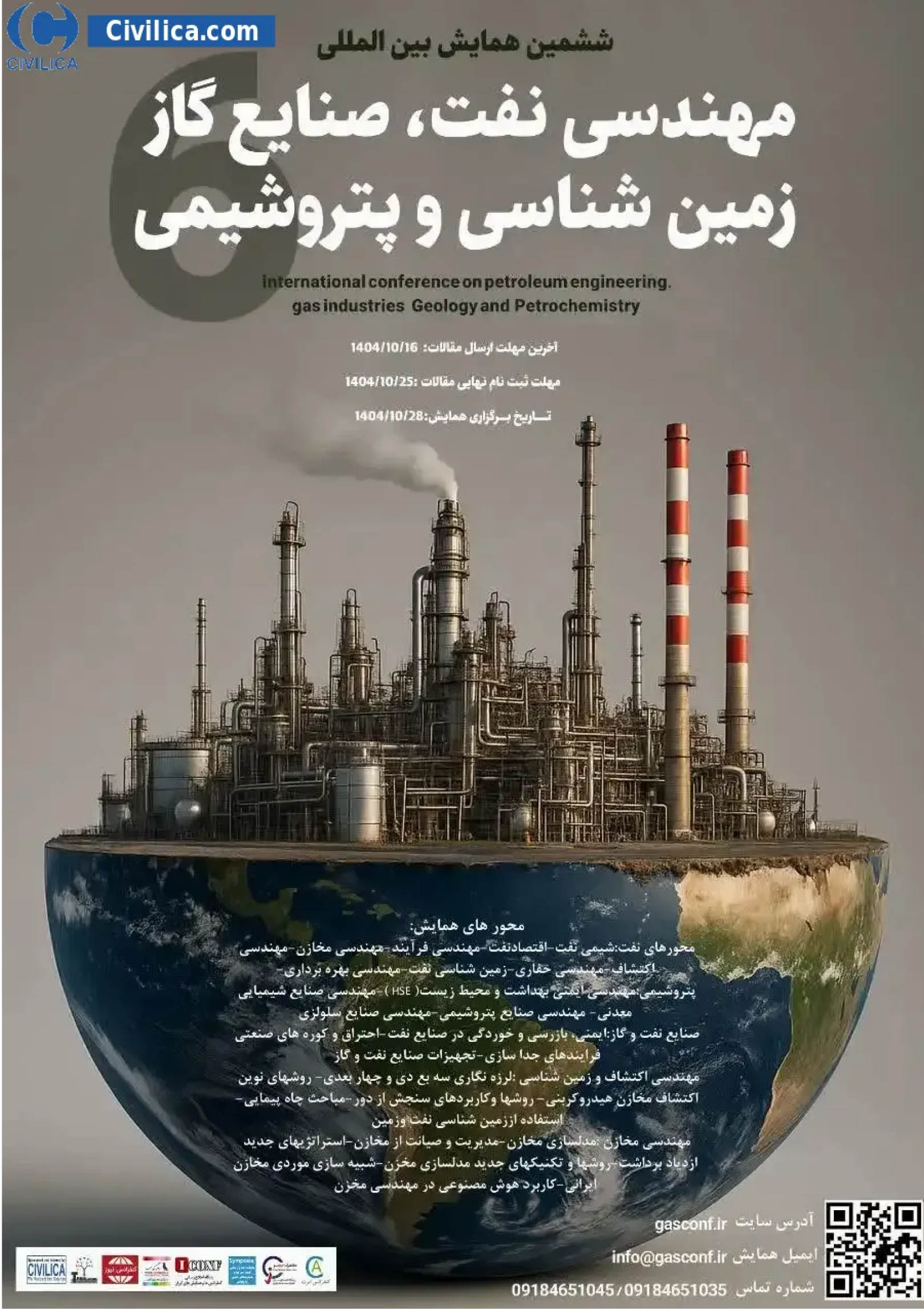 ششمین همایش بین المللی مهندسی نفت، صنایع گاز، زمین شناسی و پتروشیمی - 28 دی 1404 - همدان